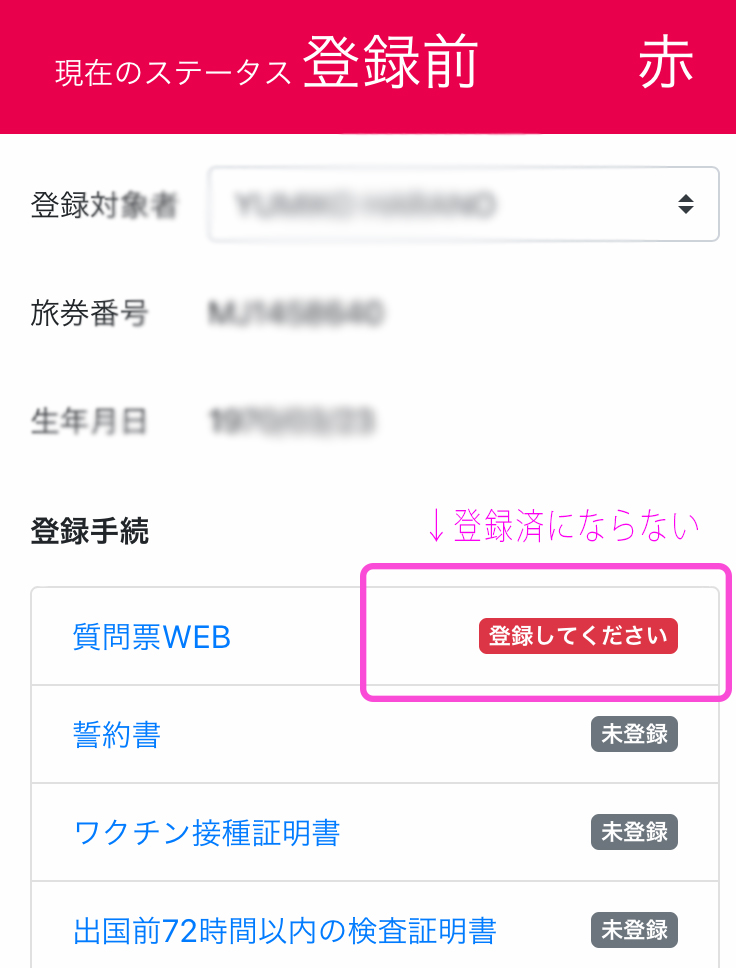 決定的にダメなのは「質問票WEB」は登録済にならない((+_+))