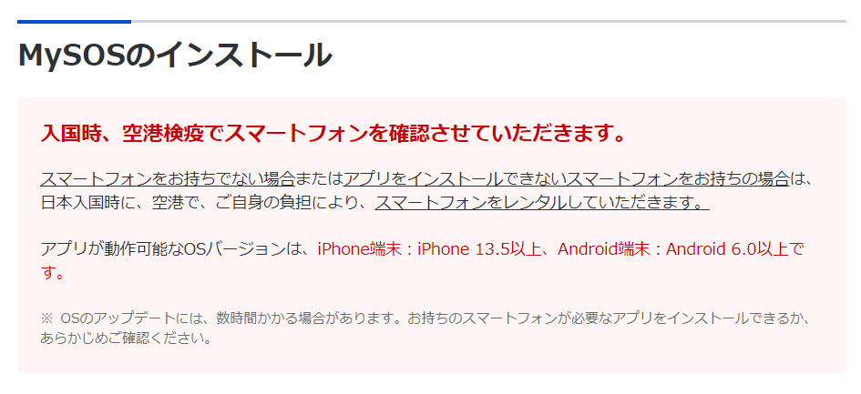 ⇒2022年8月14日 現在は『青色の国』であればアプリを入れず、MySOS webで登録に変わりました。